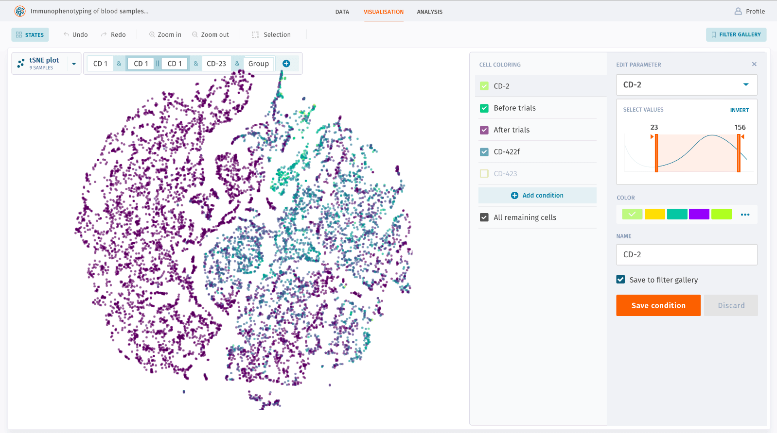ScaiVision is an intuitive deep learning software for single-cell data analysis. It helps to discover rare biosignatures in a time-efficient manner. The product allows its users to upload and analyze rich data-sets consisting of hundreds of parameters from millions of individual cells. The huge amount of data that needs to be stored, processed and visualized puts many technical challenges on the presentation, application and database tiers. ScaiVision is a product of Scailyte AG, a Swiss-based leading startup company in the rapidly growing markets of Single-Cell Biology and Artificial Intelligence.